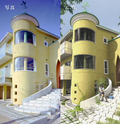 そして当事務所製作のパースは現実の写真と遜色ないほど精密に製作されますので、建物竣工の時「しまったぁ〜」と言う事がないのです。 |
